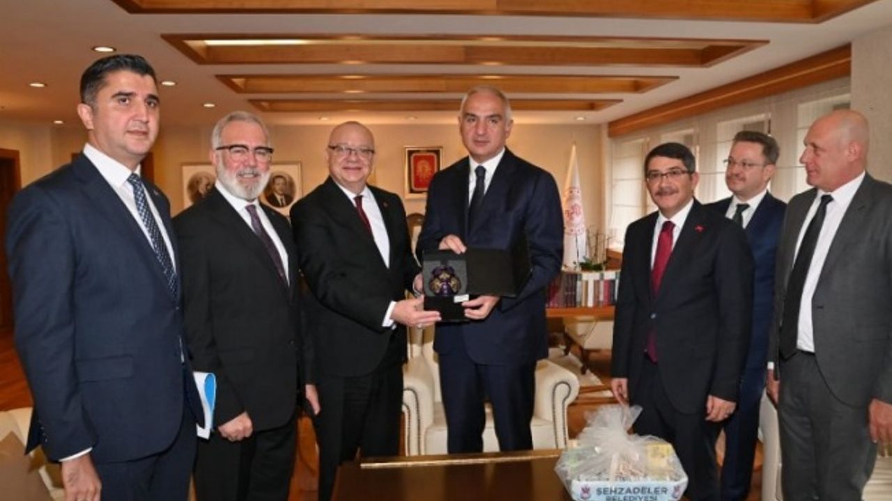 Manisa Büyükşehir Belediye Başkanı Cengiz Ergün, Manisa protokolü ile birlikte Kültür ve Turizm Bakanı Mehmet Nuri Ersoy’u ziyaret etti. Heyet, Bakan Ersoy’u 2024 yılı bahar döneminde yapılacak Manisa’nın köklü festivaline davet etti.MANİSA (İGFA) - Manisa Valisi Enver Ünlü, Manisa Büyükşehir Belediye Başkanı Cengiz Ergün, Şehzadeler Belediye Başkanı Ömer Faruk Çelik, İl Kültür ve Turizm Müdürü İbrahim Sudak ile Manisa’yı Mesiri Tanıtma ve Turizm Derneği Başkanı Ufuk Tanık’tan oluşan Manisa heyeti, Kültür ve Turizm Bakanı Mehmet Nuri Ersoy’u ziyaret etti.