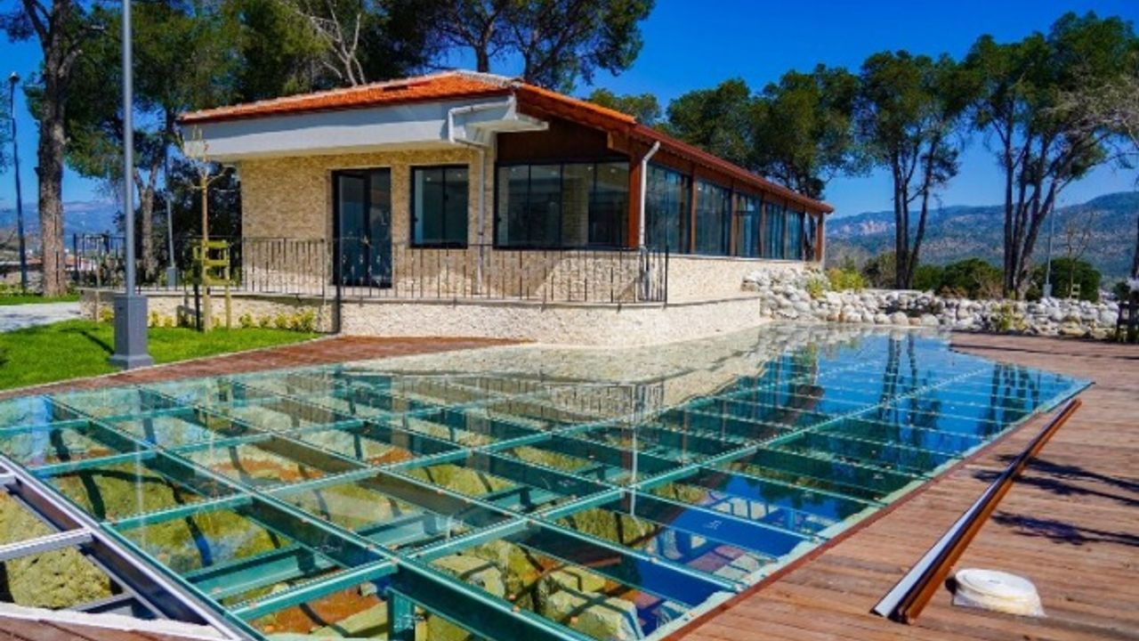 Ağaç dikimi ve çimlendirme çalışmalarını geçtiğimiz günlerde tamamlayan ekipler, park içerisindeki mezar alanının camla kaplandı.