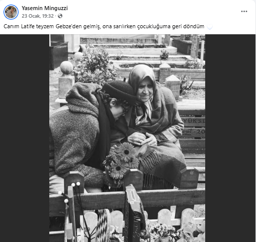 Vahşi bir cinayetin kurbanı olan evladının acısını her an yüreğinde taşıyan Minguzzi, siyah-beyaz fotoğrafta teyzesinin omzuna yaslanmış halde görülüyor. Bu duygusal anı şu sözlerle paylaştı: