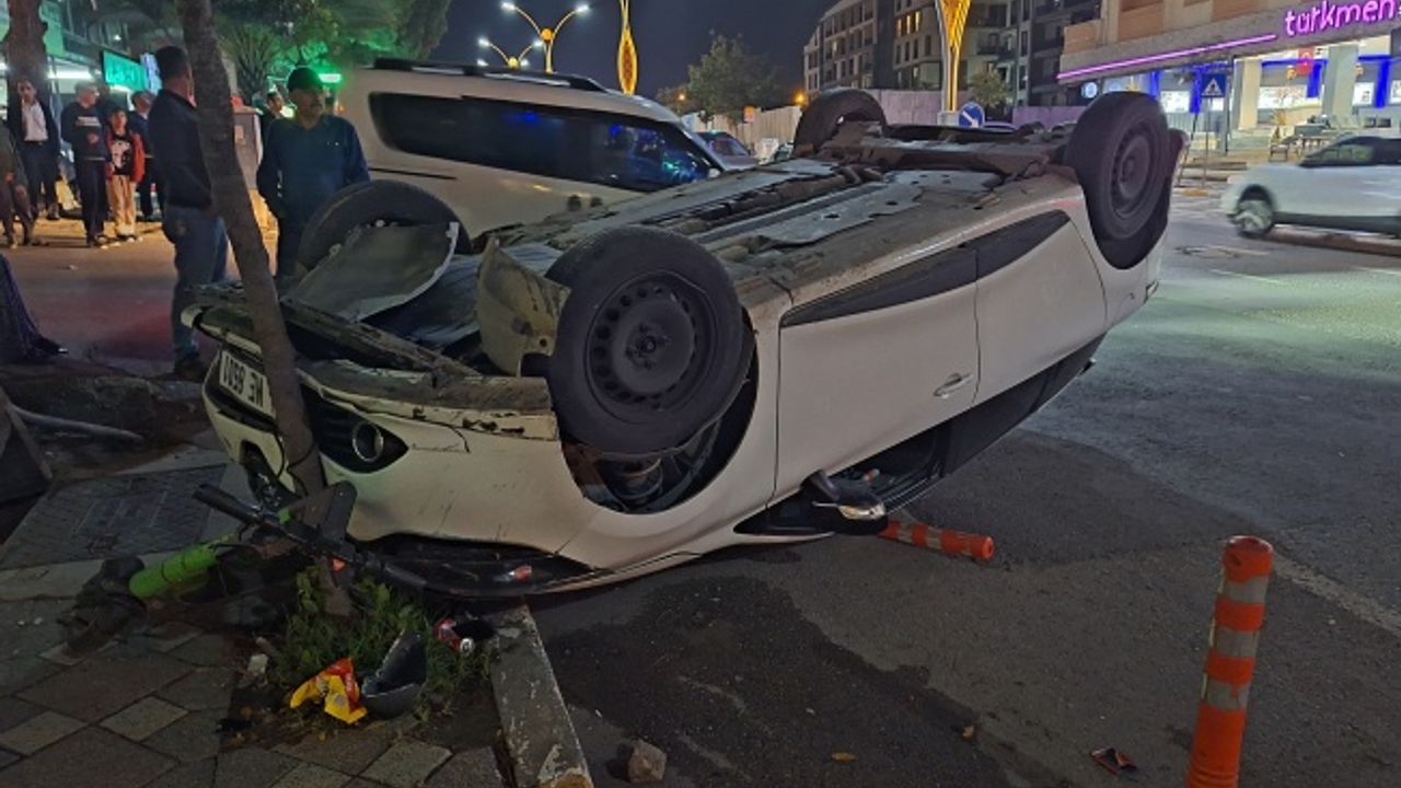 Darıca'da halk otobüsüyle çarpışan otomobil takla attı,1 kişi yaralandı