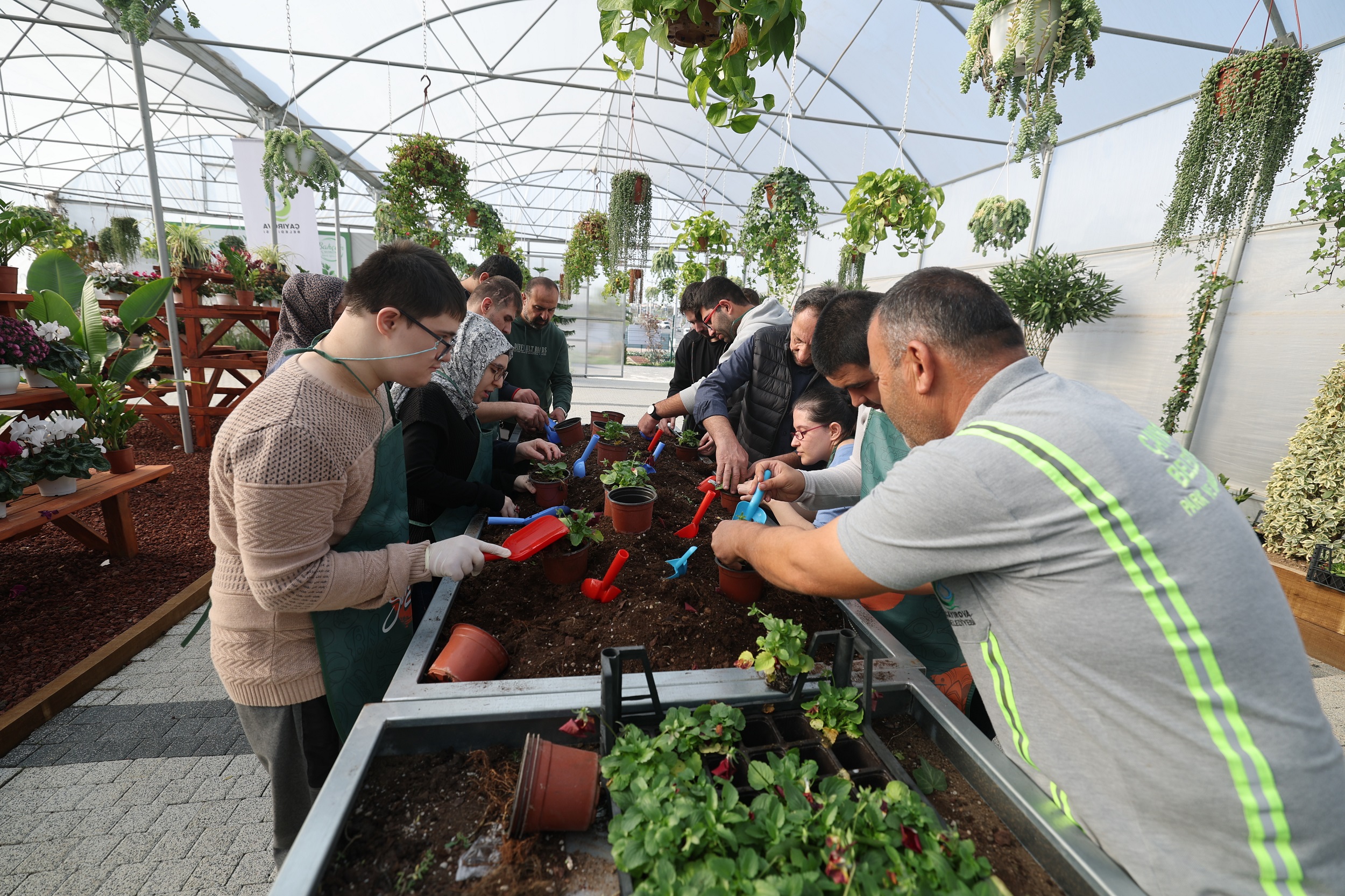 Daha sonrasında ise sera alanına geçen özel bireyler, burada Çayırova Belediyesi Park ve Bahçeler Müdürlüğü çalışanlarıyla birlikte, mevsimlik bitkileri saksılarla buluşturdu. Serada, menekşe ekimini ilk olarak öğrenen ve daha sonrasında da uygulamalı olarak kendileri için getirilen saksılara çiçek eken özel bireylerin mutlulukları gözlerinden okundu. Özel bireylerin aileleri de bu güzel etkinlik için, Çayırova Belediyesi’ne teşekkürlerini iletti.