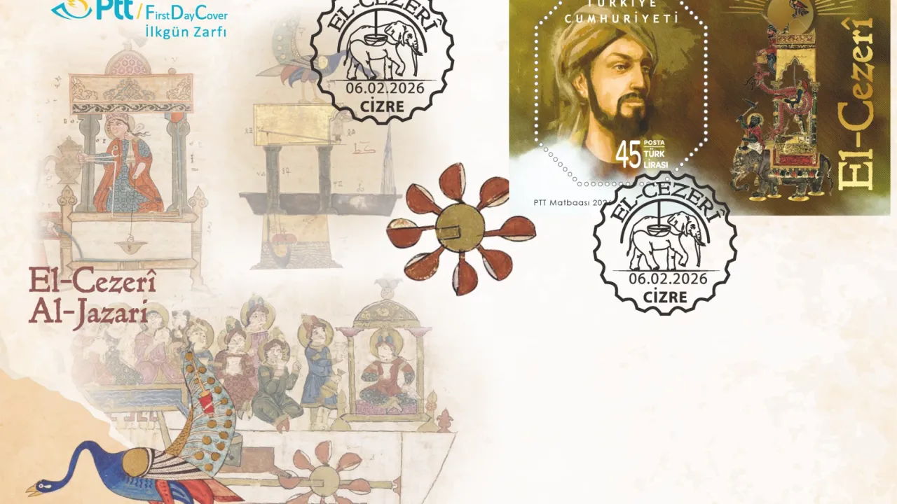 PTT AŞ, El-Cezerî anma pulunu ve ilkgün zarfını tanıttı. 45 TL değerindeki pul ve 90 TL değerindeki zarf, PTT şubelerinde ve online olarak satışa sunuldu.