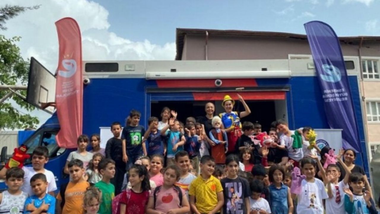 Hatay’ın Samandağ ilçesinin Sutaşı, Cumhuriyet, Çevrik mahallelerinde oluşturulan Konteyner yaşam sitelerinde, Samandağ Mühendis Suphi Güzey İlköğretim Okulu’nda ve Kırıkhan ilçesinin aşağı ve yukarı mahallelerinde kurulmuş olan yaşam kentlerde sahnelenen oyunlar çocukların büyük beğenisini topladı ve yüzlerini gülümsetti.