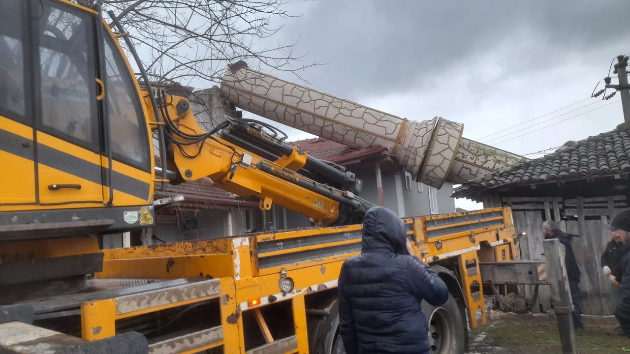 CAMİ MİNARESİ EVİN ÜZERİNE DEVRİLDİ