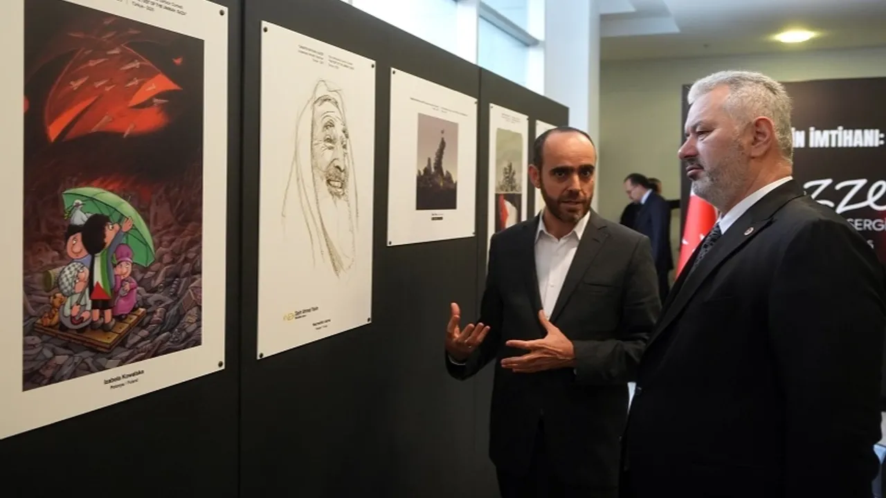 TBMM'de, Gazze'deki insani dramı konu alan 'Ümmetin İmtihanı: Gazze' Uluslararası Karikatür Yarışması eserlerinin sergisi açıldı. Sergide, 49 ülkeden 500'e yakın eserden seçilen yaklaşık 50 karikatür yer alıyor.