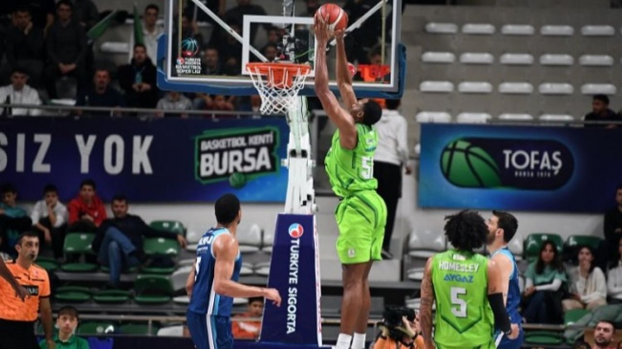 BURSA (İGFA) - Türkiye Sigorta Basketbol Süper Ligi 8. haftasında TOFAŞ, evinde Türk Telekom’u ağırladı. Nilüfer TOFAŞ Spor Salonu’nda oynanan maça Cassius Winston, Caleb Homesley, Mustafa Kurtuldum, Zeljko Sakic, Austin Wiley beşiyle başlayan Mavi Yeşilliler, ilk basketini Austin Wiley ile buldu. Mustafa Kurtuldum ve Caleb Homesley’in sayılarıyla 7-2 öne geçen Bursa ekibi, Zeljko Sakic’in serbest atış sayıları sonrası televizyon molasına 9-8 önde girdi. Mola dönüşü J.J. O’Brien ve Özgür Cengiz’in üçlükleriyle 7. dakikada skoru 17-10 yapan ev sahibi takım, Cassius Winston’ın basketi sonrası ilk periyodu 19-12 önde kapattı.