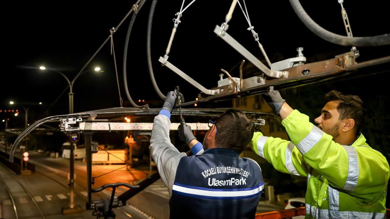 Günlük ortalama 55 bin yolcu taşıyan tramvayın günlük bakımı için gece saatlerinde sahaya inen UlaşımPark ekibi, güvenli ulaşım için rayların bakımını aksatmıyor. Kocaeli’nin demir ağları olan tramvayda gündüz yolcular taşınırken gece saatlerinde ise rayların bakımı yapılıyor. Yolculuğun olmadığı saatlerde bakımı yapılan raylarla birlikte hem hattın güvenliği hem de yolculuk konforu en üst seviyede tutuluyor.