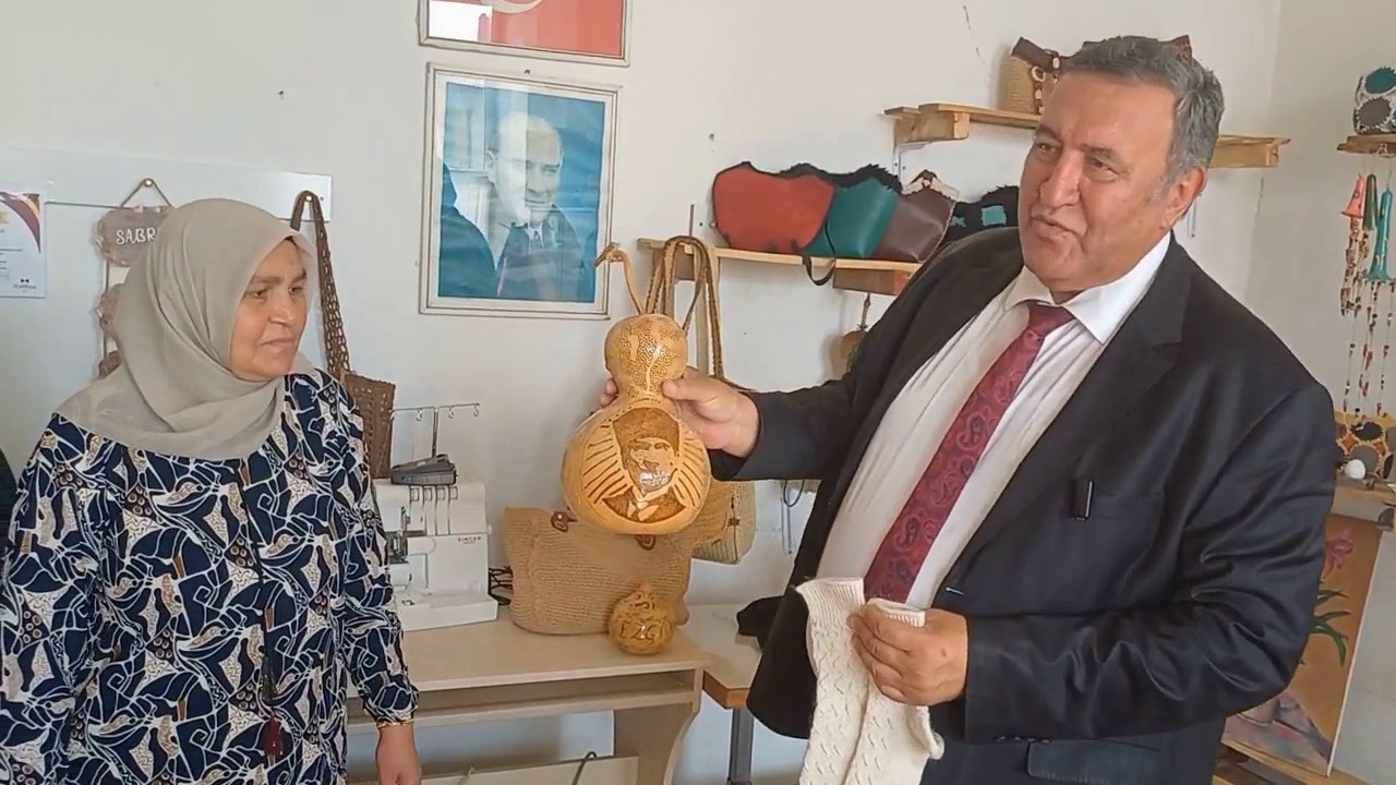 Kooperatif üyesi Kadın, “Kabağın üzerine çizimlerini yaptıktan sonra işleme yapıyoruz, yakarak siyahlaştırıyoruz. Bu hale getirilmesi tamamen kadın eliyle oluyor. Işıklandırma eklenerek gece lambası haline geliyor. El sanatları olarak su kabağı yapıyoruz, atık derilerden çantalar üretiyoruz. Atık Kâğıt rulo yaparak çantalar örüyoruz. Ayrıca atık derilerden de ürünler yapıyoruz. Hediyelik eşya olarak yumurta kabuklarını işliyoruz, küçük lambalar yapıyoruz. Yumurtaların içini boşaltıp makinelerle işleyerek hediyelik eşya haline getiriyoruz.”